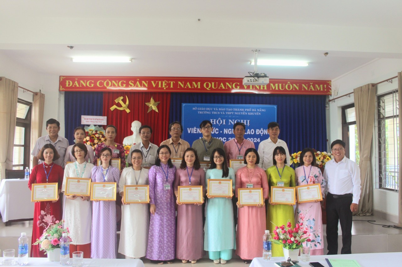 Hôm nay, ngày 30 tháng 9 năm 2023, Trường THCS & THPT Nguyễn Khuyến tổ chức Hội nghị Viên chức-Người lao động năm học 2023-2024. Về dự với Hội nghị có Ông Ngô Ngọc Hoàng Vương, Trưởng phòng Giáo dục chính trị và Công tác học sinh sinh viên – Sở GD và ĐT Đà Nẵng; Ông Nguyễn Văn Trương, Trưởng ban đại diện CMHS nhà trường cùng toàn thể giáo viên, nhân viên nhà trường cũng có mặt đông đủ. Sau một buổi sáng làm việc khẩn trương, nghiêm túc; Hội nghị đã đánh giá công tác dạy – học năm học 2022-2023, đồng thời đề ra các nhiệm vụ, giải pháp và chỉ tiêu năm học 2023-2024.