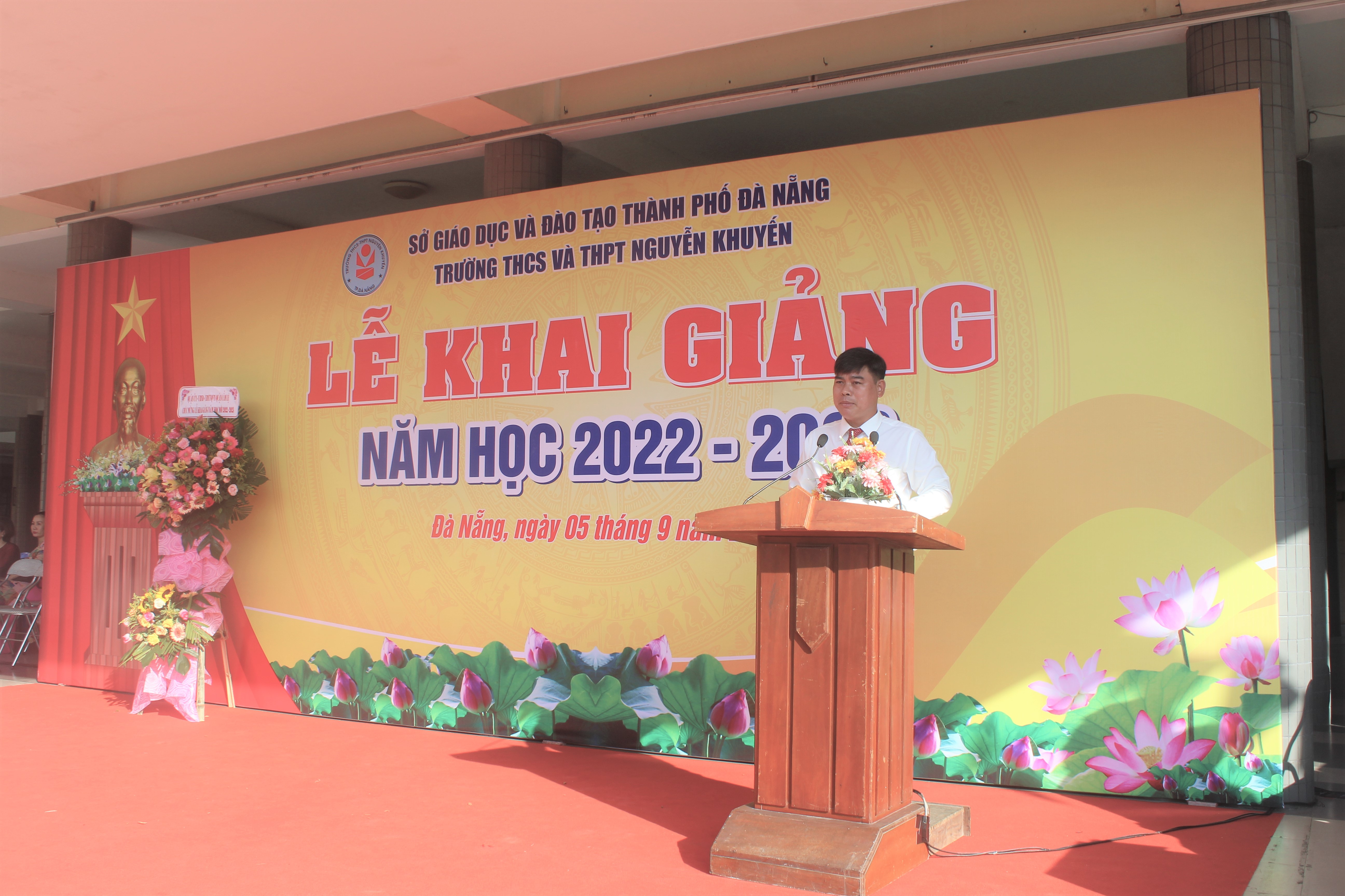 Nhà trường đã vinh dự được chào đón các đại biểu đại diện lãnh đạo Sở Giáo dục và Đào tạo, lãnh đạo Ủy ban nhân dân quận Cẩm Lệ, lãnh đạo Ủy ban nhân dân phường Khuê Trung, Thường trực Ban đại diện Cha mẹ học sinh; đông đủ cán bộ, giáo viên, nhân viên nhà trường và đặc bệt là sự hiện diện của hơn 1.800 học sinh của cả hai cấp học.