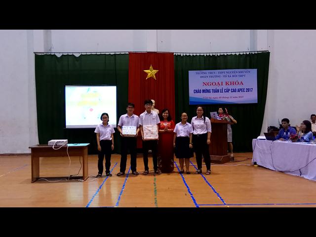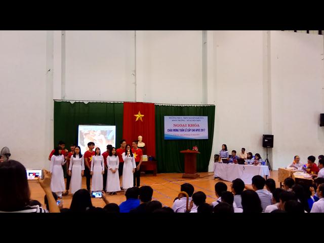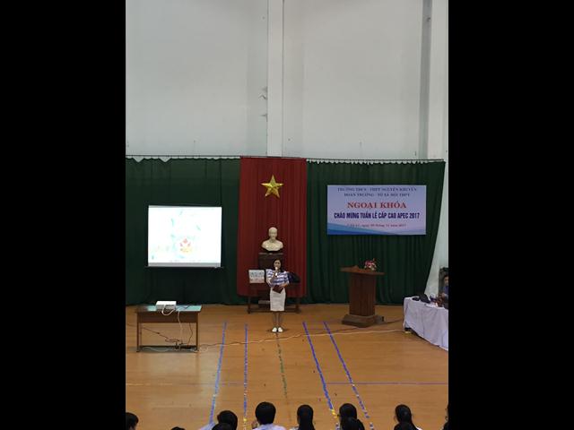 Theo sáng kiến của Đoàn trường và thực hiện nhiệm vụ năm học của Tổ Xã hội THPT, chiều ngày 9/11/2017, trường THCS & THPT Nguyễn Khuyến đã tổ chức chương trình Ngoại khóa cho cấp học sinh THPT với chủ đề: “Chào mừng tuần lễ cấp cao Apec Việt Nam 2017”. Đây cũng là hoạt động hưởng ứng, chào mừng sự thành công của Đại hội Đoàn trường đầu tiên của trường THCS & THPT Nguyễn Khuyến.