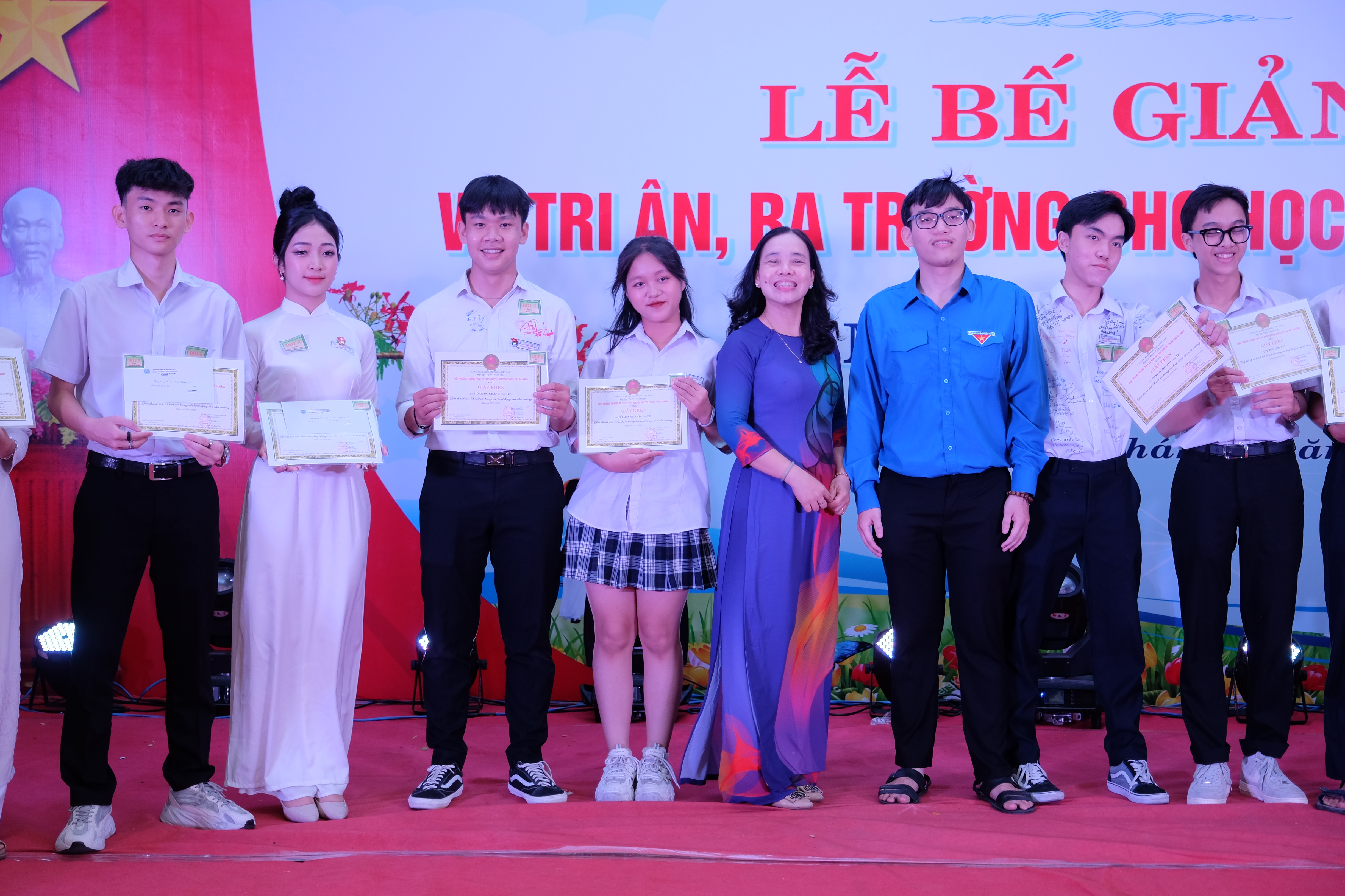 Đặc biệt tuyên dương em Nguyễn Minh Thư lớp 9/5 đã tích cực tham gia và đạt nhiều thành tích xuất sắc tại các cuộc thi, hội thi do các cấp tổ chức- xứng đáng là học sinh tiêu biểu của trường năm học 2022-2023; em Nguyễn Phan Chi Mai lớp 8/1 đạt giải triển vọng trong cuộc thi viết thư quốc tế UPU năm 2023; em Đặng Đông Hòa lớp 12/1 học sinh tiêu biểu nhất khối của lớp 12, tấm gương tiêu biểu về học giỏi, xuất sắc trong các hoạt động phòng trào… và còn nhiều tấm gương xuất sắc khác nữa.